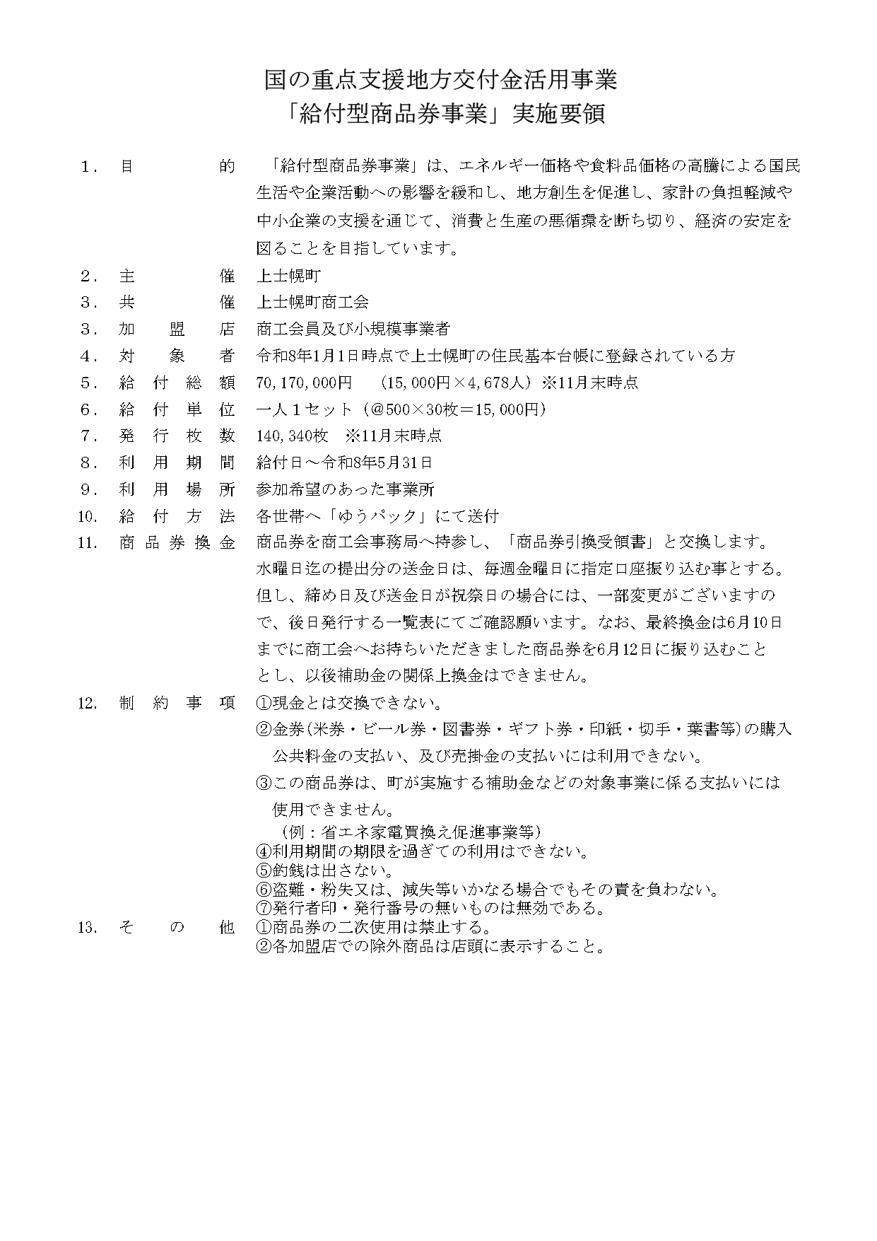 - 商品券の取扱い及び換金事務に協力できること